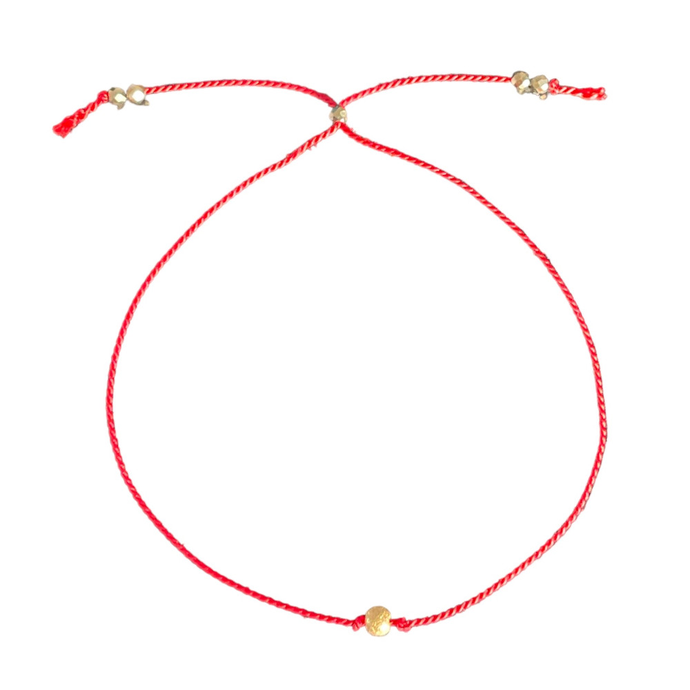 Bransoletka wykonana jest z jedwabnej nitki zakończona hematytami.