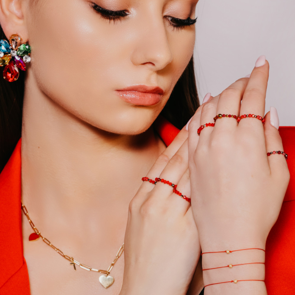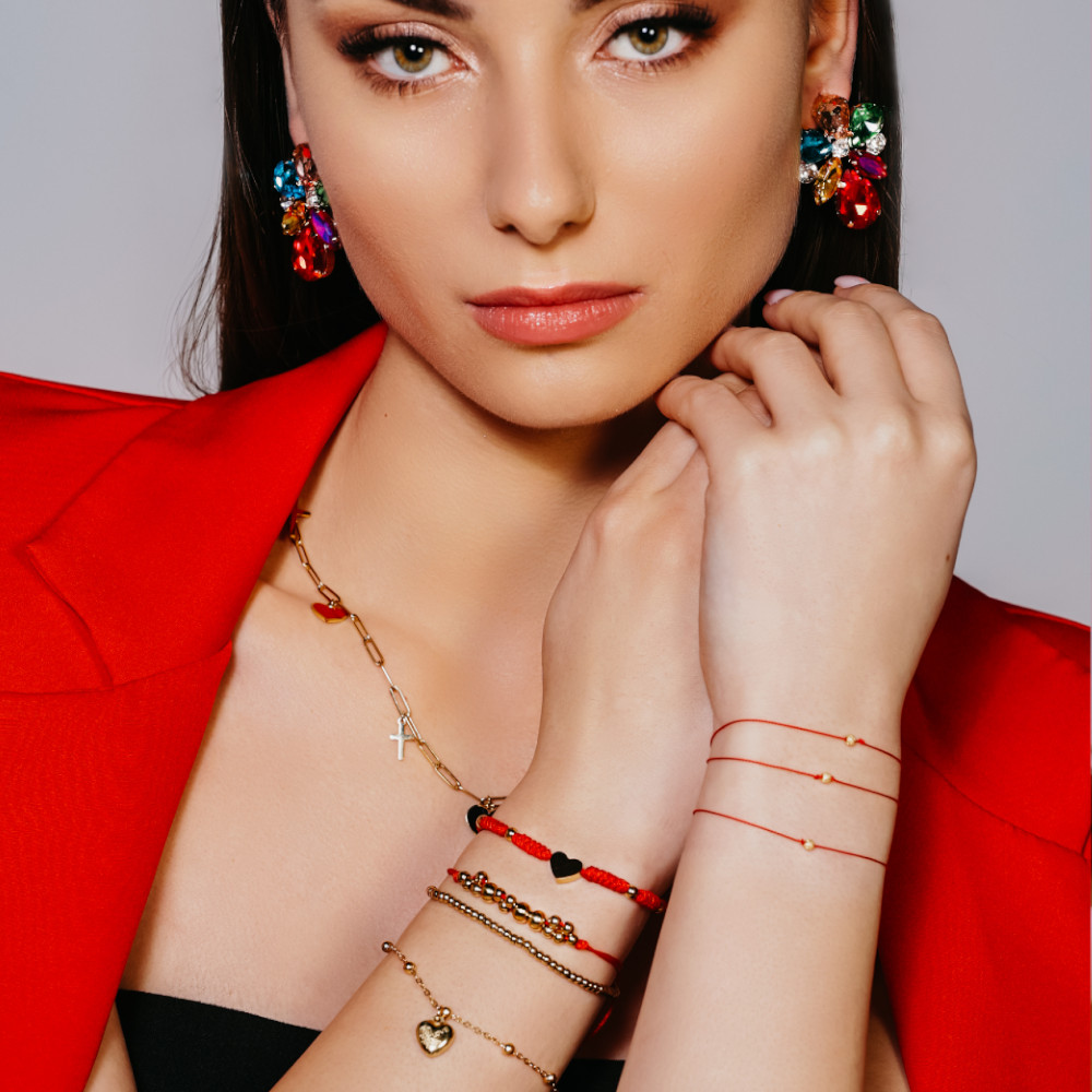Bransoletka wykonana jest z jedwabnej nitki zakończona hematytami.